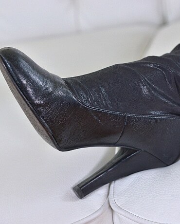 College Brunette in Black Boots Teases with Footjob and Barefoot Ride
