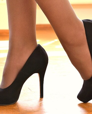 This web site contains sexually explicit material:Sultry redhead Aylin Diamond turns a simple dance session into an intense foot-focused encounter. Wearing thigh-high nylon stockings and elegant high heels, the flexible Romanian beauty shows off her long legs and perfect rhythm. But once the music slows down, she drops to her knees to suck Ricky Mancini’s cock before wrapping her soft nylon-covered soles around his shaft. She rides him with her tight pussy, then demands full foot worship, guiding his mouth to her toes for deep licking through the stockings and bare. Her glossy toenails wrap around his dick for more stroking before she bends over and takes him from behind, keeping her soles perfectly framed for the camera. The scene climaxes as she jerks him off with her bare feet, making him shoot all over her heels and calves in this must-watch foot fetish exclusive.