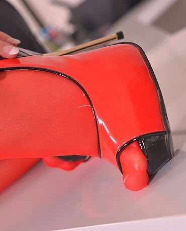 This web site contains sexually explicit material:Lucia Denville brings a new kind of energy to the office in this seductive solo scene. Dressed in a tight mini skirt, red sheer stockings and black-and-red high heels, she takes a quiet moment at her desk to indulge her fantasies. As she runs her hands over her smooth thighs and calves, her arousal grows. With a deep love for heels, Lucia lifts one to her lips and begins to lick the glossy surface, teasing herself with every motion. Her blouse comes off slowly, revealing elegant red-and-black lingerie that hugs her curves perfectly. Soon her bra slips away, exposing her full, natural breasts. She turns to reveal her firm, round ass, then eases her panties down and begins to touch herself with growing intensity. With legs spread across the desk and heels beside her, Lucia explores her wet pussy, building toward a satisfying climax. Captured in crisp HD, this solo performance is ideal for fans of stockings, heels, and elegant office-themed foot and leg worship.